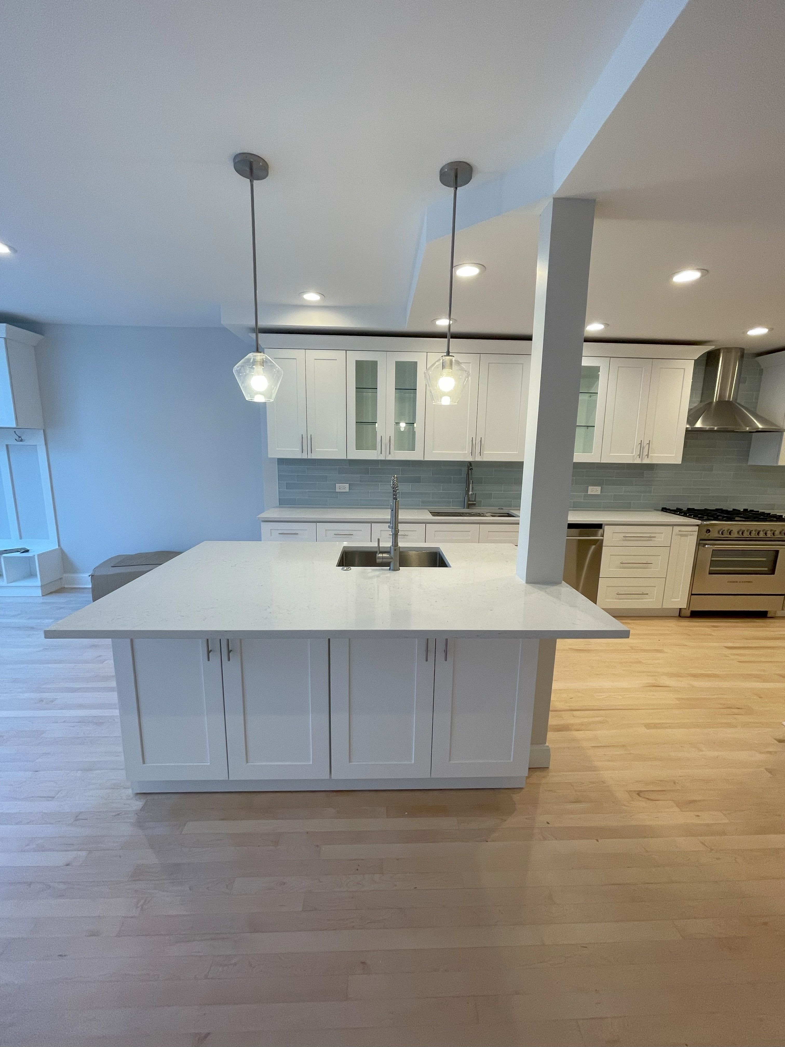 This Chicago family was revamping multiple spaces in their home, including their kitchen. They chose Daltile’s Jasmine White Quartz to brighten up their new space.