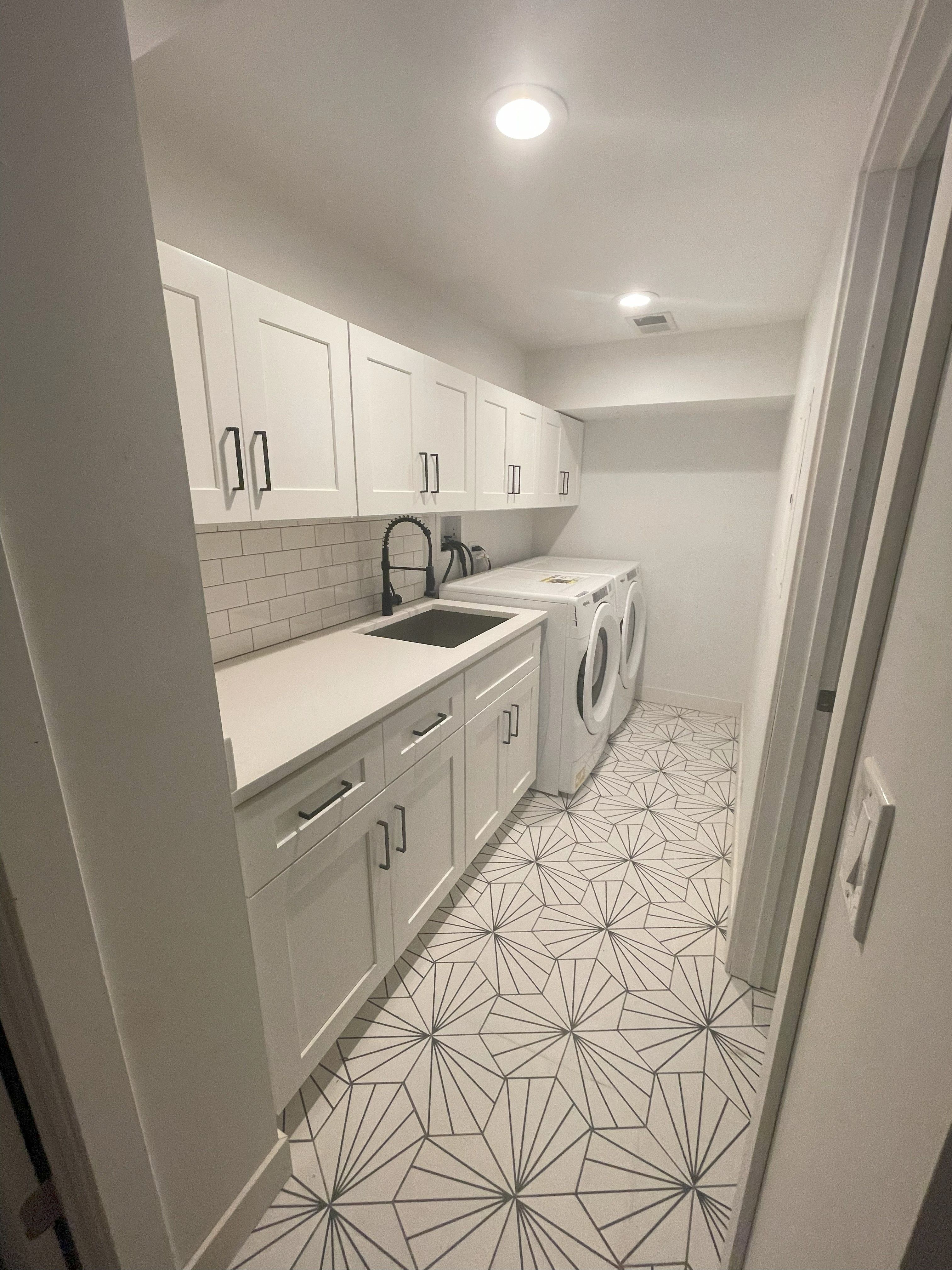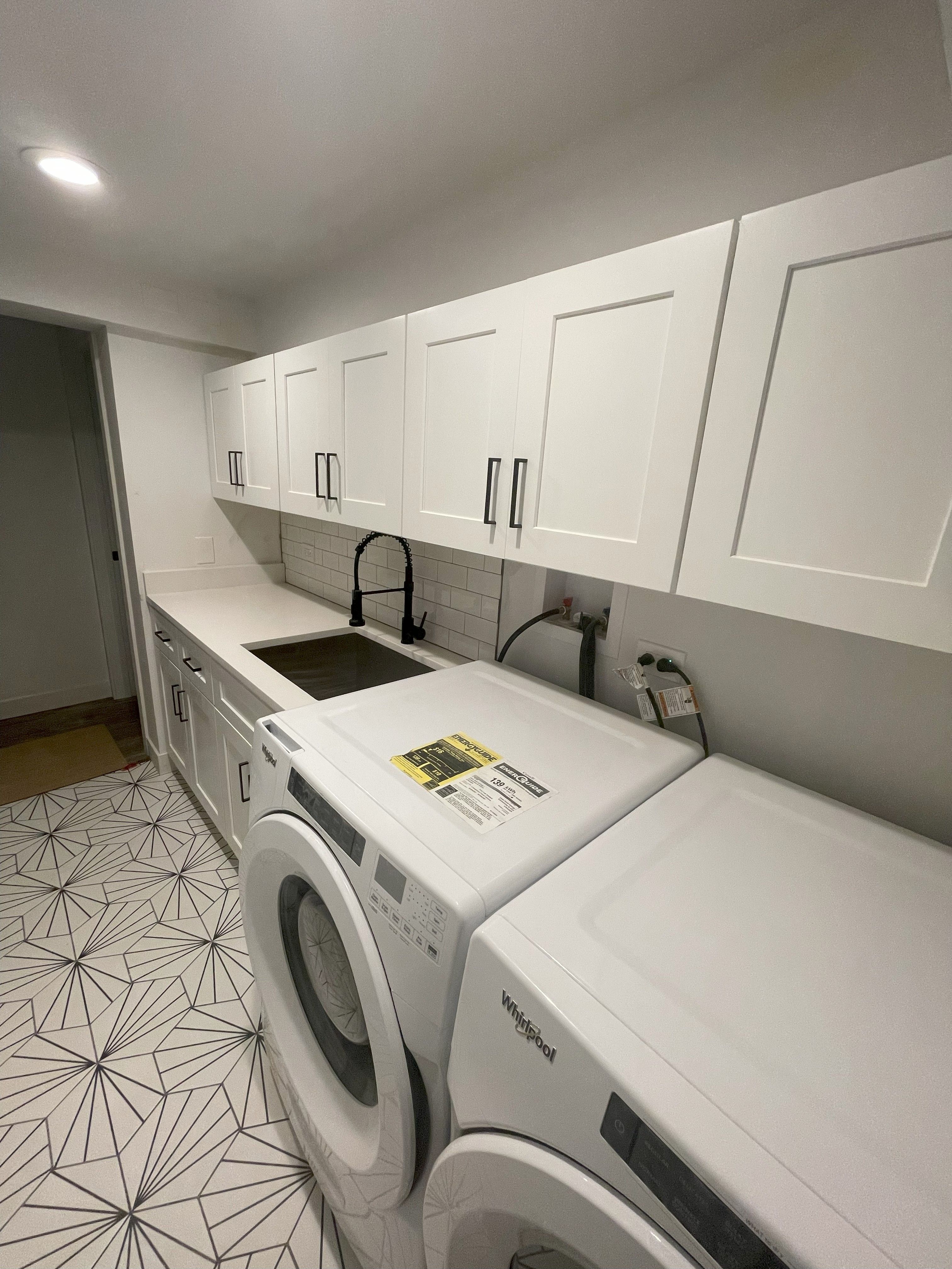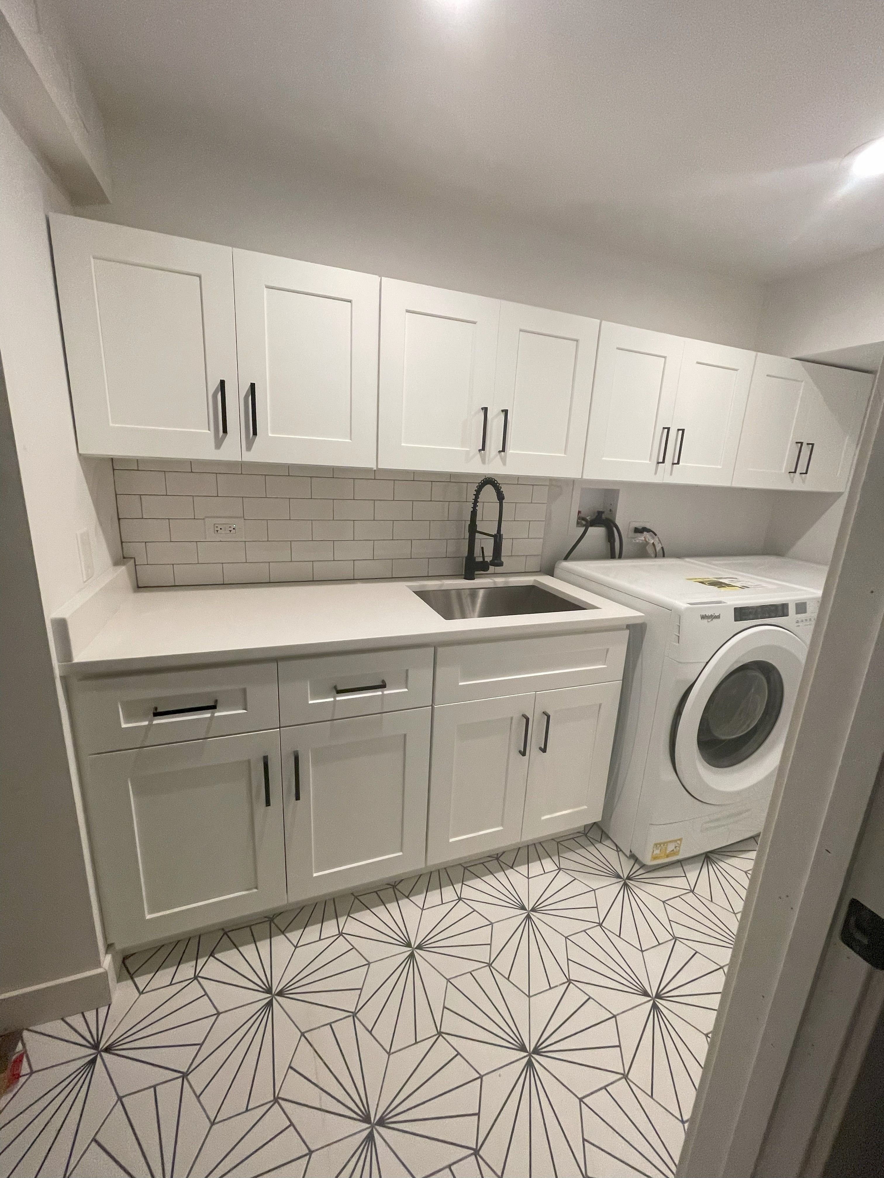 Finally, for their laundry room, the Chicago family chose Daltile’s Jasmine White Quartz for a crisp clean look.