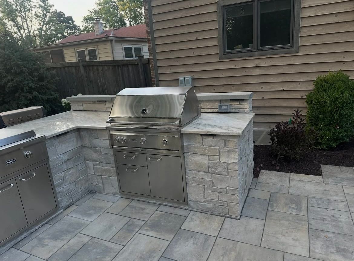 This Deerfield homeowner chose the stunning Taj Mahal Quartzite from MSI to complete their beautiful new outdoor kitchen project.
