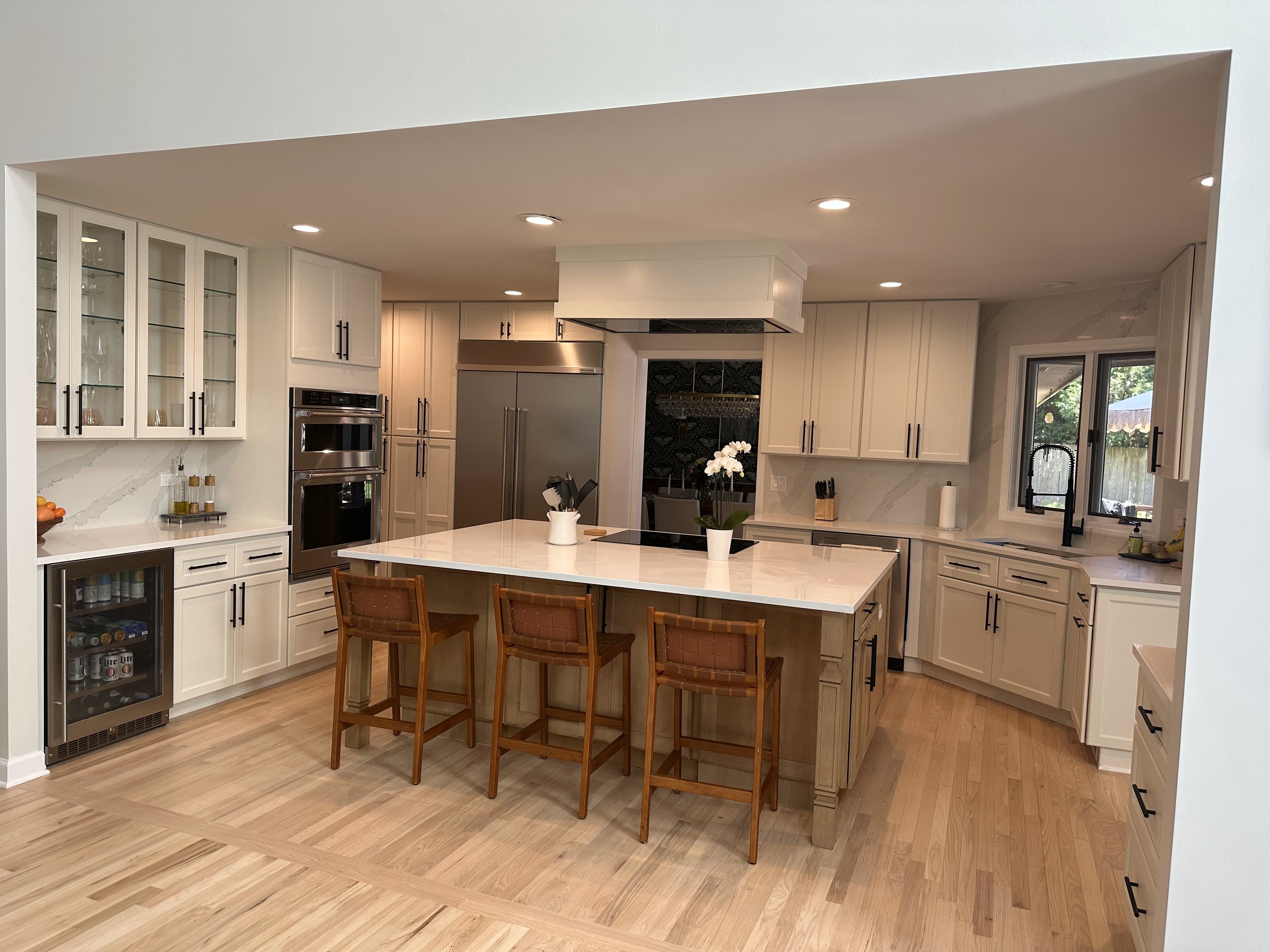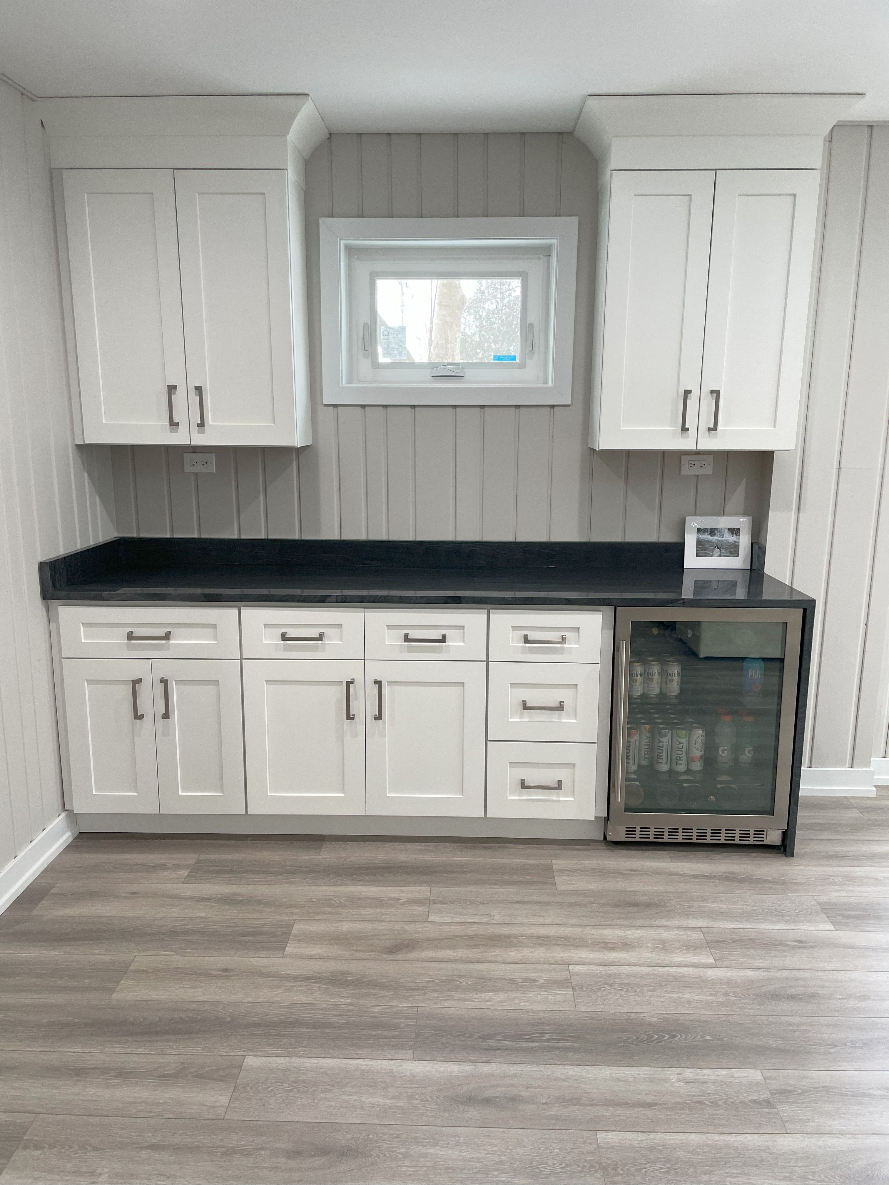 These Highland Park homeowners revamped their basement and chose Daltile’s beautiful Tartarus Quartz for their wet bar countertop and waterfall.