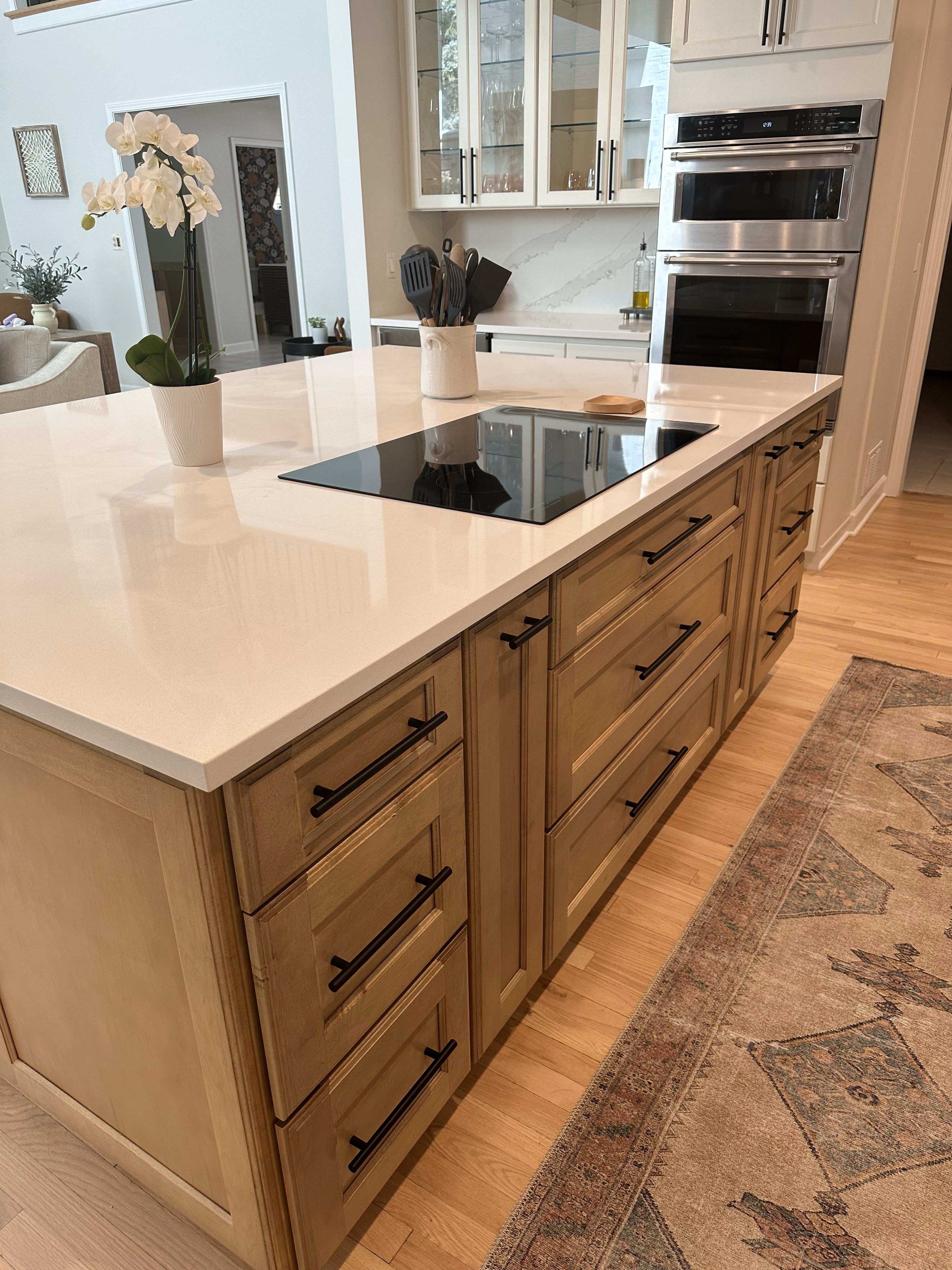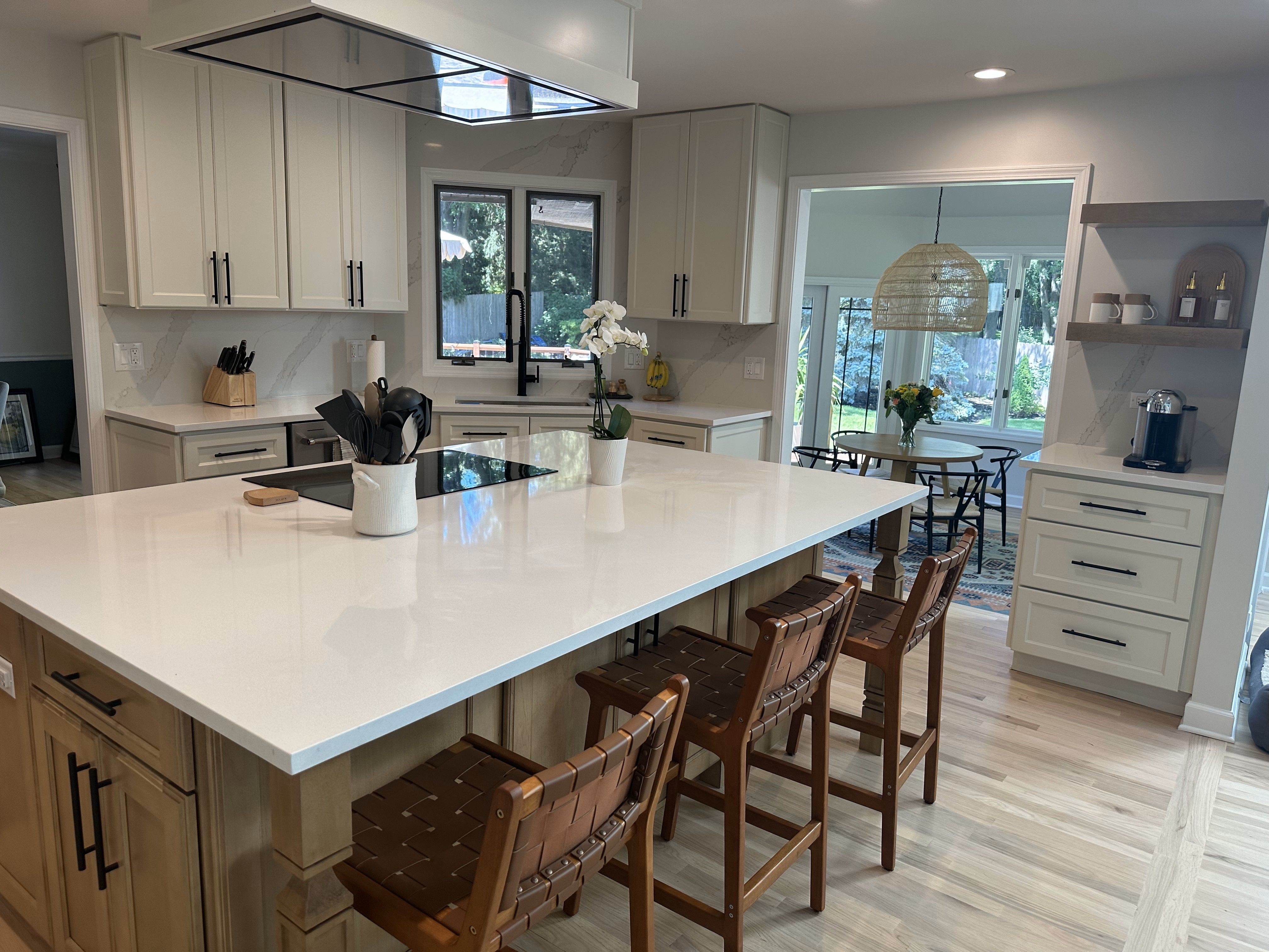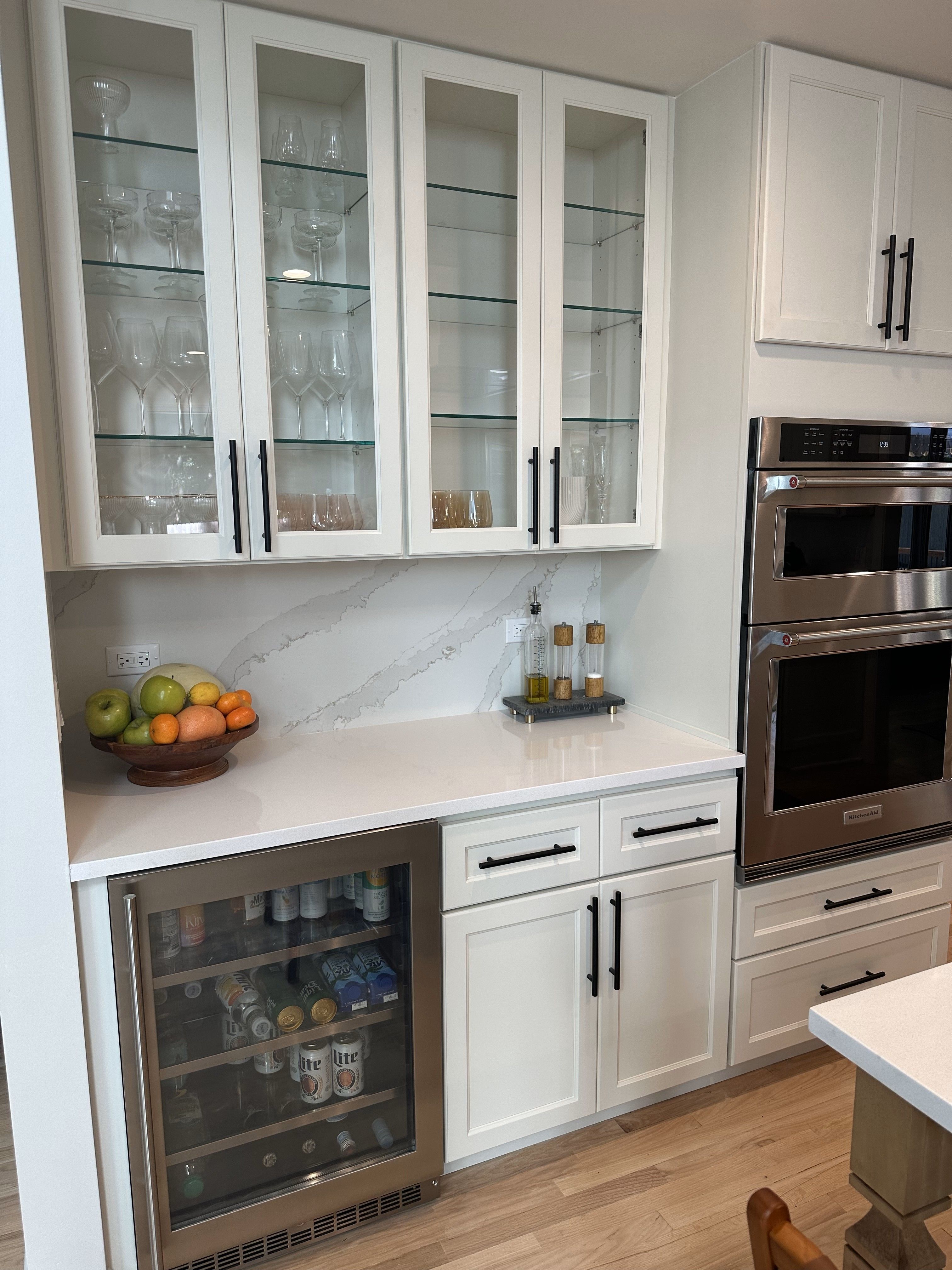 These Libertyville homeowners were looking for the perfect stones to complete their new kitchen. They chose Daltile's Woven Wool Quartz for their perimeter counters and island, and Daltile’s Patriotic Calacatta Quartz for their stunning backsplash.